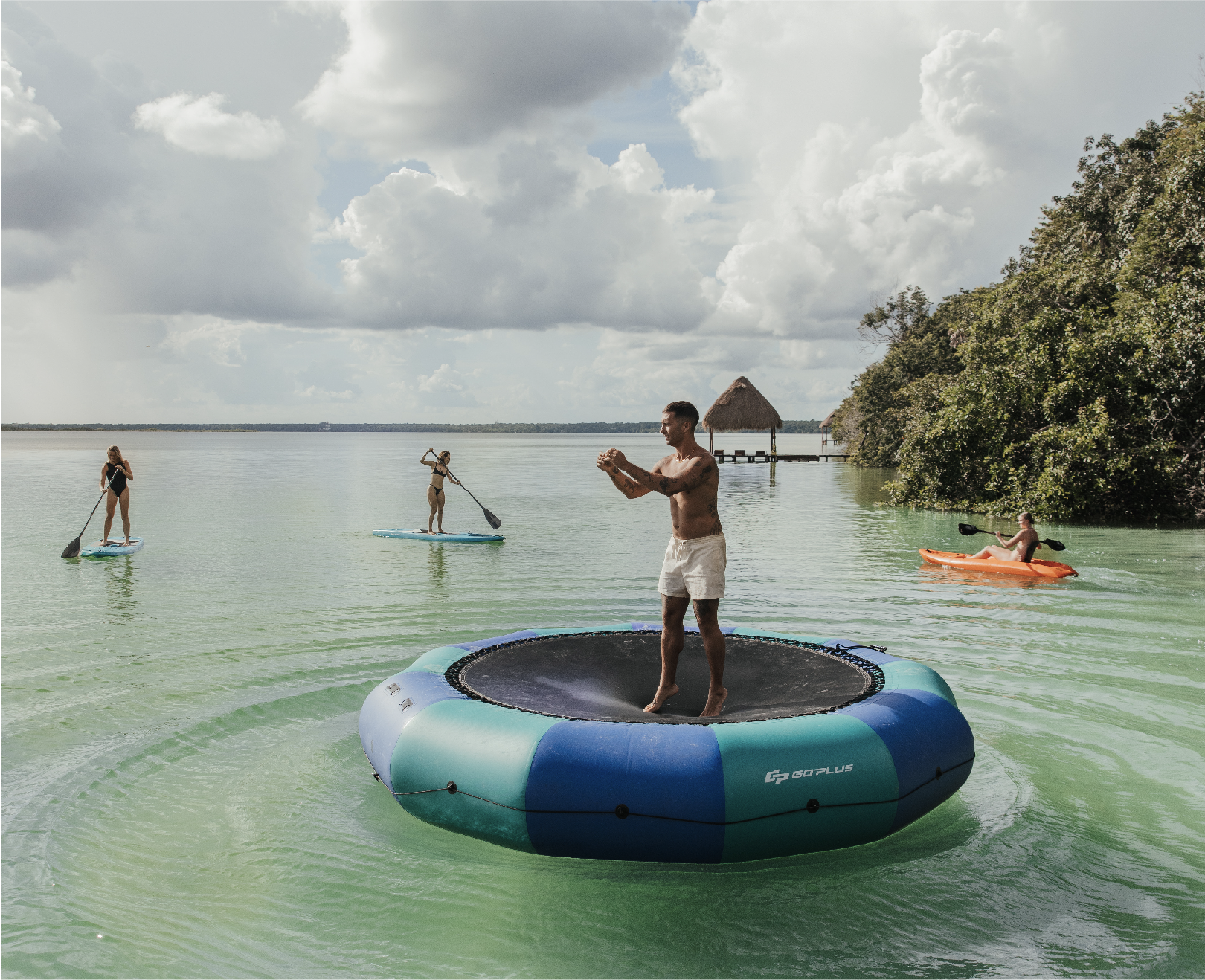 Incluye: trampolin acuático, armado y desarmado, anclaje.